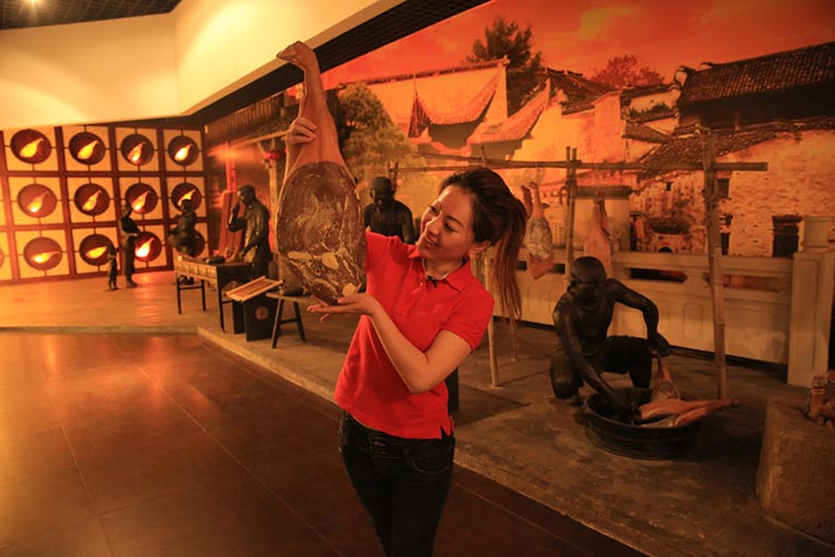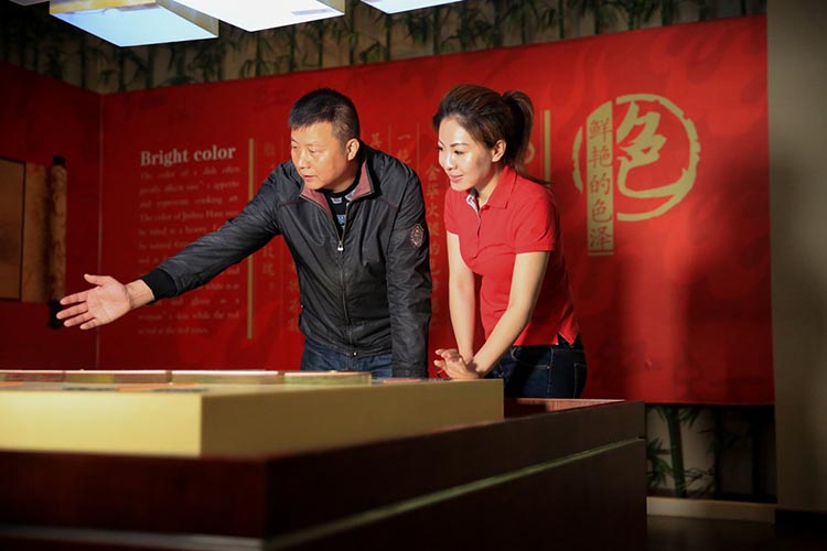 在火腿博覽館取景的過程中,主持人對火腿制作工藝和火腿的造型產(chǎn)生了濃厚的興趣:修胚、上鹽、洗曬、整形、發(fā)酵、聞香等工序不但精細且充滿了儀式感。陳師傅向她介紹:傳統(tǒng)火腿制作工藝工序多達36道,金字火腿遵循古法工藝制作,保證金字出產(chǎn)的每一條腿都是“復古”的“美味腿“。為什么說是美味腿?在金字火腿的中國火腿博覽館內(nèi),欄目組對著一桌的仿真火腿菜肴大呼驚嘆,忍不住都想拿起筷子吃上兩塊。