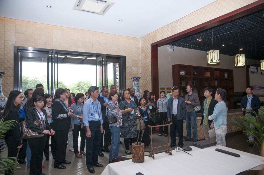 “Jinhua ham is so magical”,”This is delicious”“Good,Good”······5月9日上午,在 由金字興建的國內(nèi)唯一的中國火腿博覽館及世界火腿博覽館場館內(nèi)異常熱鬧,一聲聲包含著好奇、驚嘆、稱贊的英文不絕于耳。原來,是來自英國、湯加、毛里求斯等20國駐華使節(jié)50余人訪問團(tuán)在參觀考察。